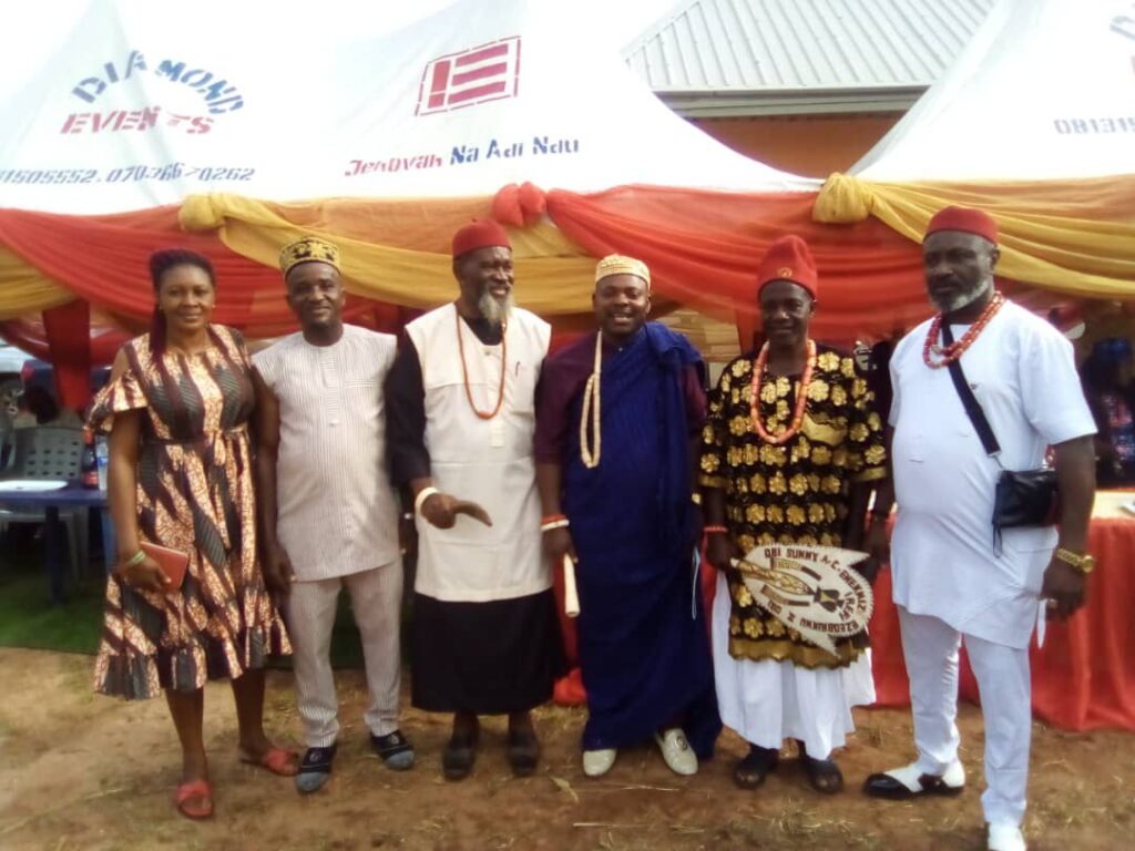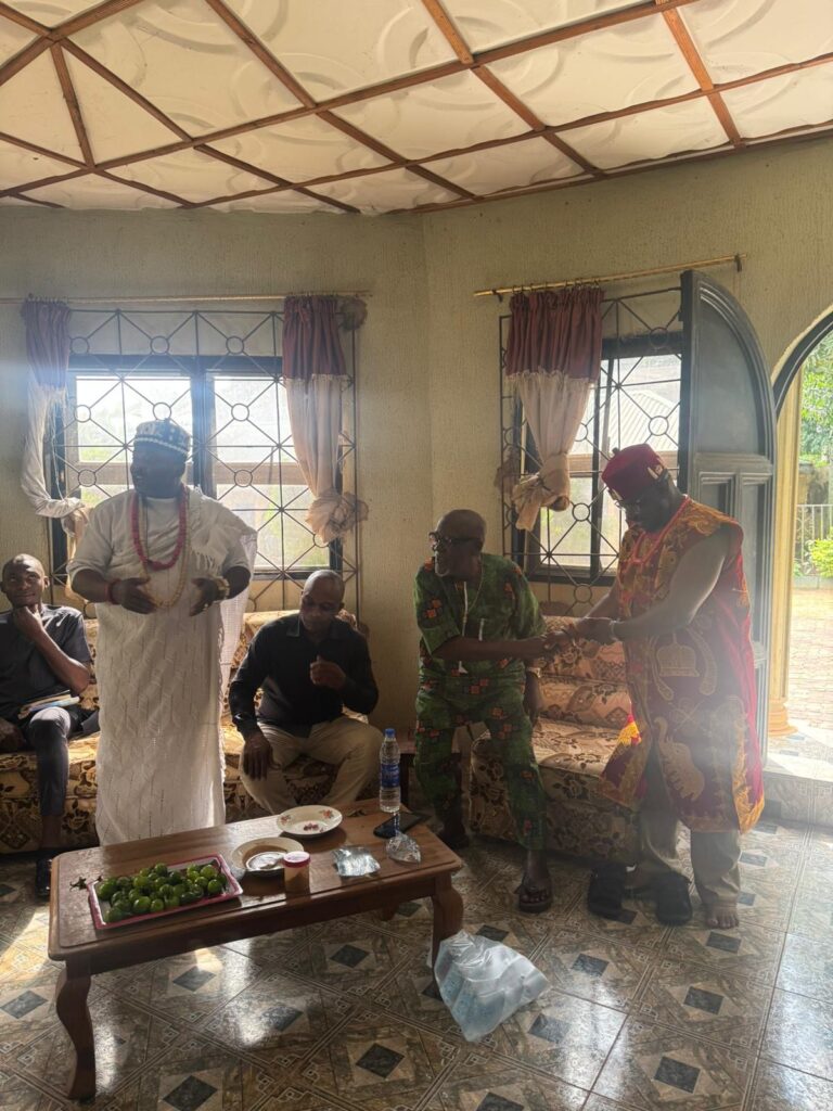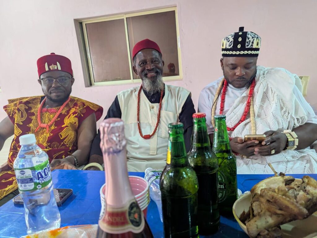 Our first destination was Awka-Etiti, where we were received at the ancient home of HRH Late EzeAni of Awka-Etiti. The welcome there was heartwarming. Food and drinks flowed, pictures were taken, and the eldest son of the late king, Chief Agu-na-efefe , an investor and proud contributor to Igboebinie PLC, handed us the sacred nzu. After his prayers and a short history of the ancient palace, we were able to share with those present the opportunities that Igboebinie PLC represents. It was a memorable moment, though we had to keep our stay short so we could continue our journey.